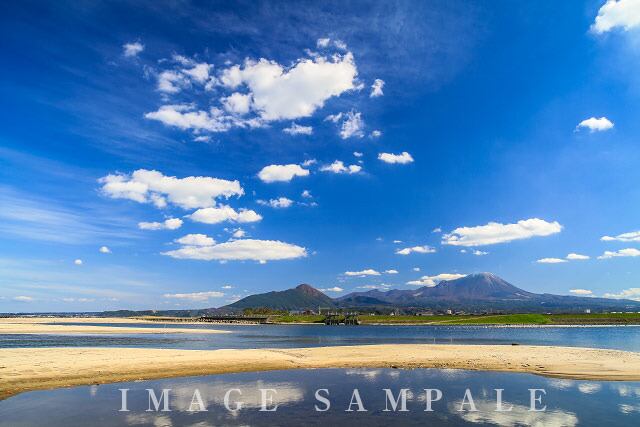 日野川から大山の見える景色 ■画像サイズ:3456×5184pxel(印刷B4版相当) ■画像データ:JPEG(RGB) ■納品方法:ダウンロード販売 ※コピー防止のため画像にサンプルテキストを入れています。購入画像にはございません。